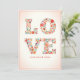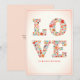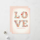 Trendy elegant flat greeting card featuring stacked letters spelling "LOVE" in floral and geometric patterns over a gradient peach background with a rounded corner border. Personalizable message text. Perfect for Valentine's Day, Sweetest Day, wedding anniversary, or any day! Available in a curated selection of vibrant background colours. Also available as a folded card.