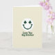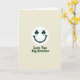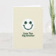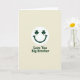 This greeting card features a dark green smiling face centred on a creamy off-white background, with a curved grin that feels like a friendly wink across the room 💚. Its eyes are replaced by two neat three-leaf shamrocks, adding a St. Patrick’s Day touch that reads like a shared inside joke between close siblings ☘️. The open space around the face keeps the focus on that warm expression, as if the character is looking right at your brother with easy affection. Beneath the graphic, the words “Love You Big Brother” sit on a single line, aligned to the centre and set in a sturdy sans‑serif style. The lettering matches the same dark green as the smiling, tying the message and the face together visually. The off-white background has a soft, lightly textured look, like gentle paper grain that keeps the scene calm and simple. A few tiny tonal shifts in the cream backdrop make the green ink stand out, while the shamrock eyes stay crisp and evenly shaped. The composition stays minimal: green smiling above, centred dark green text below, all framed by a wide margin of creamy space.