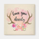Love you, Deerly. Adorable floral watercolor print with deer antlers.