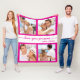 Keep cosy with this hot pink personalised fleece blanket. Featuring four custom photos of your choice and the heartfelt phrase "love you forever" in elegant calligraphy script, for a lovely keepsake gift. Great for Valentines, birthdays and anniversaries.