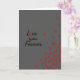 This greeting card features a deep charcoal gray background with bright red details that stand out right away. In the upper-left area, the words “Love you Forever” appear in smooth, flowing red lettering, and the “o” in “Love” is replaced by a small red heart. From the upper-right corner, a stream of red hearts drifts diagonally toward the bottom-right, in different sizes and angles. The hearts look like quick, sketchy drawings with tiny shadows, which makes them feel human and sincere rather than perfect. The dark background keeps everything calm, while the red hearts and message bring in warmth and closeness ❤️. It feels meaningful because it says what many people struggle to put into words: steady love that lasts, whether for a partner or someone you care about deeply 🥰. It’s an easy card to give when you want your feelings to be clear without saying too much. Hope it helps you share Valentine’s Day sentiments with someone special.