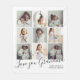 This custom photo collage blanket design is a heartfelt tribute perfect for gifting to a cherished grandma. Featuring a grid layout of nine personalised photo slots, it beautifully showcases treasured family moments in a soft, modern aesthetic. The bottom of the blanket is adorned with elegant script that reads "Love you Grandma" alongside a customisable message from the grandchildren, adding a personal and emotional touch. Ideal for Mother's Day, birthdays, or special occasions, this sentimental design turns warm memories into a cosy keepsake, celebrating love, connection, and the special bond between grandmother and grandkids.