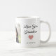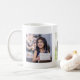 This stylish mug says "Love you Grandma" in trendy, handwritten black script with a heart, bottom of the heart element you can spot her grandchild's name, and you can customise it. This one-of-a-kind personalised two-photo script and heart mug is a great way to show your grandmother how much you care. The perfect present for Grandmother's Day. There is also room to show off two of your favourite personal photos.