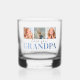 Personalised grandfather whiskey glass featuring a 3 photo collage template for you to customise, the saying "love you grandpa", and the names of the grandchildren.