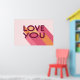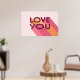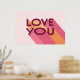 Love You Love Quote Poster. Modern design with a retro colour palette I Love You poster, makes a perfect gift for your girlfriend, boyfriend, or special someone. The pink, orange, and yellow stripes make the letters pop with an uplifting message. Give this present for Valentine´s Day or as a home decor surprise for your loved one.