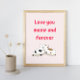 Brighten up your space with feline love! This adorable cat art print features a sweet kitty illustration on a soft pink background with the phrase "Love You Meow and Forever." Perfect for bedrooms, nurseries, offices, or any cosy corner, this print is a charming reminder of unconditional love.