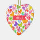 Mimi Christmas ornament design featuring a field of colourful watercolor hearts. The back of our ornament can be personalised with grandchildren names.