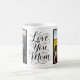 Start her morning with a warm hug and a beautiful memory with this "Love you Mom" custom photo mug. Designed with a clean, modern aesthetic, this white ceramic mug features a heart-centered sentiment paired with two of your favorite vertical or square photos. Whether it’s a picture of the kids, a throwback from a family vacation, or a sweet candid moment, this personalized gift transforms her daily coffee ritual into a moment of reflection. It’s a versatile and heartfelt choice for birthdays, Mother’s Day, or a holiday surprise. The high-quality finish ensures your photos stay vibrant and crisp through every wash. Easily upload your images to create a one-of-a-kind keepsake she will reach for every single day. Part of the matching best Mom ever collection.