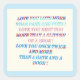 The size is perfect and the design has a softness with the beautiful flowers around the edges. The black lettering on the white background is sharp. It stands out beautifully. I love the Mixture of font styles as it catches the eye.