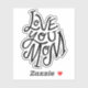 Black and white lettering "Love you mum" sticker for Mothers day.