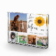This mum photo block features a modern script text design with LOVE YOU MOM, sunflower and a family photo collage. Personalise it with your family photos and text. This template works best with landscape format photographs with the subject in the centre.