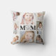 Create a keepsake photo throw pillow utilising this easy-to-upload photo collage template featuring 8 pictures and a modern typography title MOM with a heart and WE LOVE YOU text inside against an editable white background. Makes a memorable keepsake for a mum birthday or Mother's Day gift. ASSISTANCE: For help with design modification or personalisation, colour change, resizing or transferring the design to another product, contact the designer BEFORE ORDERING via the Zazzle Chat MESSAGE tab or email makeitaboutyoustore@gmail.com.