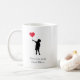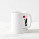 Surprise your mum with this modern and stylish coffee mug! Featuring a silhouette of a boy holding a red heart balloon, it's a heartfelt way to say "I love you, mum." Personalise it by adding your name for a personalised touch. Perfect for minimalistic moms who appreciate thoughtful gestures.