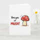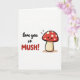 To the left, there's a sweet message that says "love you so MUSH!" The words "love you so" are in elegant black script, setting a tender tone. Then, "MUSH!" is in bold red uppercase letters, matching the mushroom's cap and adding a cute touch. The whole scene is joyful and heartfelt, with a simple and high-contrast color scheme adding to the charm.