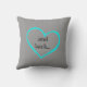 Love you to the Moon.... and back (aqua on grey); Colourful Throw Pillow; front says: i love you to the moon (with colourful hearts); back side has the words "and back" inside of a hand-drawn aqua heart!