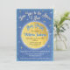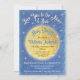 Shimmery blue sky with twinkle stars and faux gold foil Moon, "Love you to the moon and back" baby shower invitations.