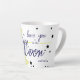 Crescent moon and black stars "Love you to the Moon and back" custom latte mug.