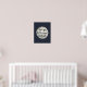 Night sky themed typography art print features the quote "love you to the moon and back" in handwritten style brush lettering inscribed on a luminous moon on a dark midnight blue background. A unique addition to your walls or to a baby boy or girl's nursery.