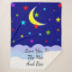 Love you to the moon and back sherpa fleece blanket. Hand drawn moon, colourful stars and clouds.