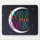 Colourful phrase, "Love you to the moon & back" with the night stars and sky behind a partial moon. Designed by Simply Put by Robin; certain elements through membership with Graphics Factory
