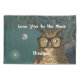 Your Name and Quote Love You To the Moon Boy's Room Nerdy Owl with Glasses and Tree and Moon. Blue Sky with a ring around the moon and a star could be Jupiter