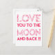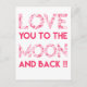 NewParkLane - Cute, romantic postcard, with quote: 'Love you to the moon and back!!' in bold typography in hot pink and with a pattern of different shades and sizes pink hearts and .