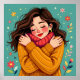 A cute whimsical folk art style girl in a warm cosy sweater giving herself a hug. Remember yourself that self-love is important with this pretty ai illustration.