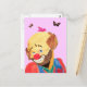 Loveable Clown Postcard. This card is decorated with a painting of a clown with a butterfly resting on his head This card would make an excellent gift for one who loves Clowns, Clowning or Circus.