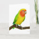 Original painting of a lutino mix lovebird by designer/illustrator Carolyn McFann on quality postage, cards and gifts for parrot lovers.
