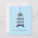 Two black lovebirds with heart tails represent the happy couple on this cute engagement party invitation. The engaged couple's names print on the striped blue panel along with all the customised information. A floral decorative ornament adds visual interest and the big engagement news is highlighted in a blue banner. The reverse reveals the birdcage home along with optional text which can be deleted if desired. Available in alternate colours with matching products.