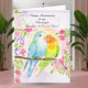 This hand-painted watercolor and pen illustration features lovebirds perched on a branch, surrounded by soft pink and purple flowers against a romantic pink sunset. Designed as a wedding anniversary card for your daughter and son-in-law, this artwork captures love, togetherness, and lasting commitment.