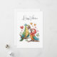 A charming illustration of two colorful parrots perched on branches, gazing at each other with joyful expressions. Surrounded by floating hearts and soft details, the artwork captures a sweet moment of affection, friendship, and love in a playful, whimsical style. Perfect to represent romance, companionship, and happiness in nature.