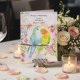 This hand-painted watercolor and pen illustration features lovebirds perched on a branch, surrounded by soft pink and purple flowers against a romantic pink sunset. Designed as a wedding anniversary card for your mom and dad, this artwork captures love, togetherness, and lasting commitment.