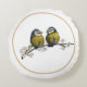 Lovebirds sitting on a cherry blossom branch round cushion