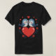 I give wanted to give this a 4 instead of a 5 because these Basic DARK T0shirts run unexpectedly SLIM or Narrow. Which is great if you do not have a potbelly, but I have a paunch. It isn't the shirt's fault that I've got a beer belly. The design and shirt itself is a quality cotton shirt. The color is more of a deep purple, but still a very pretty color. The Basic DARK T-shirts run a bit SLIMMER than the Basic Ts. The neck is a fraction narrower (or seems to be narrower) also. I'm a paunchy middle-aged woman and my neck is 12 inches (31cm) thick and the neckline fell about the same as in the photo of the man, and I had the desire to tug it a bit. So if you're a thick necked man or like loose shirts, be aware these are slimmer shirts. Once I get rid of my lockdown paunch it'll look great. The shirt washed well in cold water with no apparent bleeding. We don't have a dryer, so it hung dry. Did not shrink. Love the colors and the design. The design looks smaller on my shirt than it does on the model on-line. But still, it looks good on the shirt. The printing looks as it does on the model, just the size seems fractionally smaller. Washed garment in cold water, hung dry and design appeared unaffected.