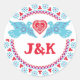 Lovebirds turquoise and red round sticker