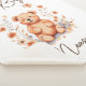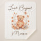 This design features a bear sitting in a bed of flowers with the quote Loved beyond measure.