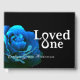 Loved One typography with forevermore in an infinity symbol on a black and digitally illustrated blue rose, for a forever loved one's funeral or memorial service.
