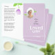 A fresh, clean memorial or funeral service program with stylized lavender rose bud graphics and Loved One typography with "forevermore" in an infinity symbol. NOTE: These come as a flat sheet. You will have to fold them yourself.
