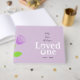 Loved One typography with forevermore in an infinity symbol with lavender rose buds for a forever loved one's funeral or memorial service.