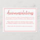 Customise this lovely coral and white enclosure card, this item announce accommodations for your guests. Using a white background with coral text, personalise as you choose.