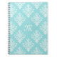 Lovely Aqua Blue and White Damask With Monogram Notebook