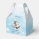 Celebrate your little aviator with this adorable boy baby shower favor box featuring a cute teddy bear pilot flying his vintage airplane. Designed in a charming blue and brown color palette, this favor box adds the perfect touch of adventure to any baby boy celebration. The watercolor-style teddy bear aviator illustration creates a warm and whimsical atmosphere, making the box ideal for filling with candies, small gifts, or keepsakes. Perfect for aviation-themed baby showers, airplane parties, or little pilot celebrations, this customizable favor box lets you personalize names, dates, or messages with ease. Make your event unforgettable with this stylish and high-quality boy baby shower favor box that guests will love taking home as a sweet memento.