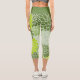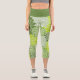 Lovely Botanical Green Dahlia Floral Capri Leggings