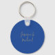 Lovely Chic Calligraphy Couple Names Blue & Gold Key Ring