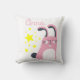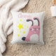 Customisable baby girl cushion with a cute pink bunny and yellow stars.