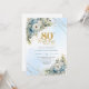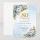 Lovely Dusty Blue Floral Gold 80th Birthday Invite