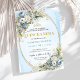 Lovely Dusty Blue Gold Greenery Quinceañera Invite