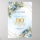 Lovely dusty blue watercolor florals 90th birthday poster