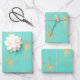 Wrapping paper that is stylish and chic, this item features a blue turquoise background with golden feathers. A cute design, order yours today!